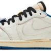 The 2025 Fragment Design x Travis Scott x Air Jordan 1 Retro Low OG SP ‘Sail Military Blue’ continues the legacy of high-profile collaborations, blending streetwear edge with iconic design. This triple-threat sneaker unites the visionary aesthetics of Hiroshi Fujiwara’s Fragment Design, Travis Scott’s signature reverse Swoosh, and Jordan Brand’s heritage silhouette.